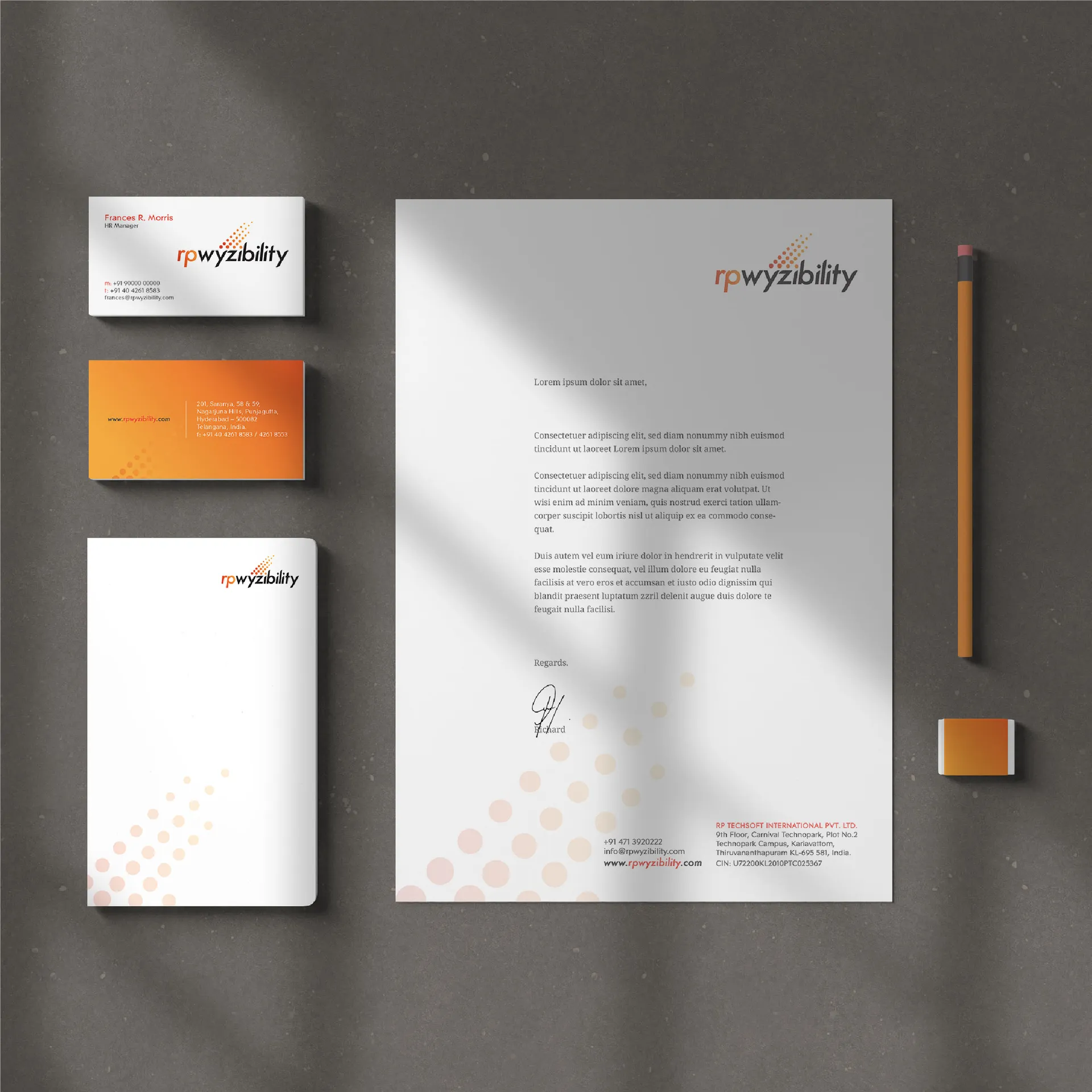 About project For RPwyzibility, we created a unique brand identity, ensuring the logo and supporting designs embodied the brand’s innovative approach Year: 2019 Category: Branding Client: RPwyzibility Share: Prev projectAllNext project